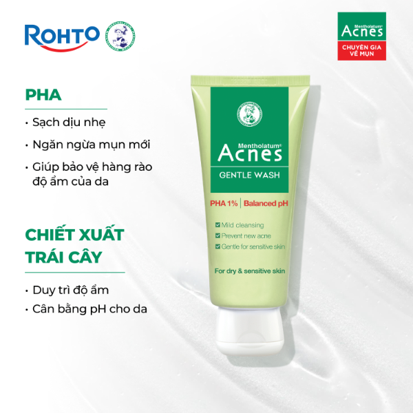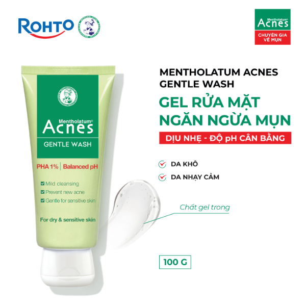 Da khô & da nhạy cảm dễ bị kích ứng với sự thay đổi của môi trường hay các thành phần trong mỹ phẩm; do đó cần được chăm sóc bởi những sản phẩm dịu nhẹ, lành tính. Acnes Gentle Wash với độ pH cân bằng, làm sạch dịu nhẹ, duy trì độ ẩm, ngăn ngừa mụn mới.