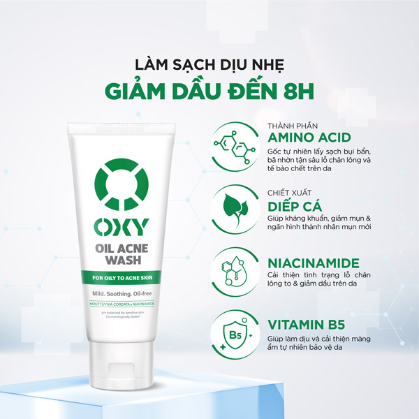• Sữa tạo bọt nhẹ, giúp làm sạch dịu nhẹ, giảm dầu & dịu da 8H.