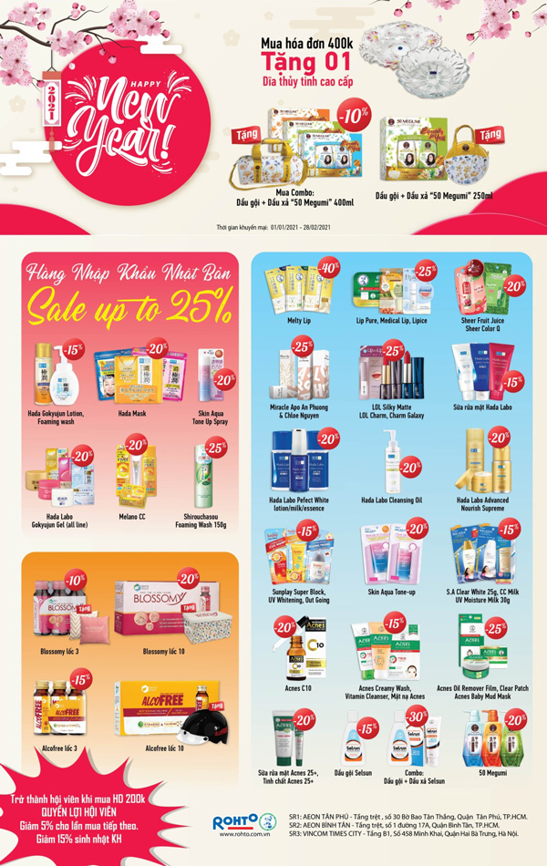 Chương trình khuyến mãi tại các hệ thống showroom Rohto tháng 2/2021