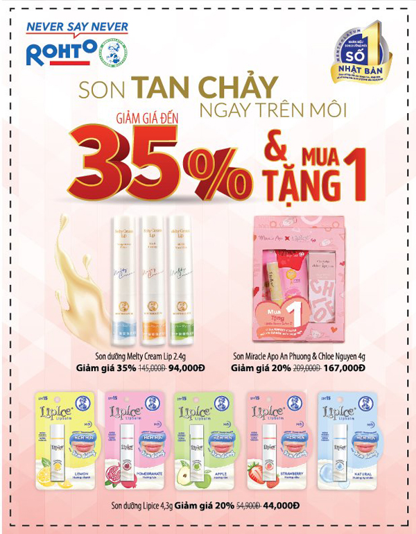 Tặng 01 son dưỡng môi Mentholatum Melty Cream Lip khi mua 299.000VNĐ sản phẩm Rohto