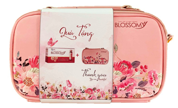 Mua 01 tặng 01 Túi đựng mỹ phẩm xinh xắn khi mua thức uống đẹp da cải thiện sức khỏe Blossomy lốc 10 chai