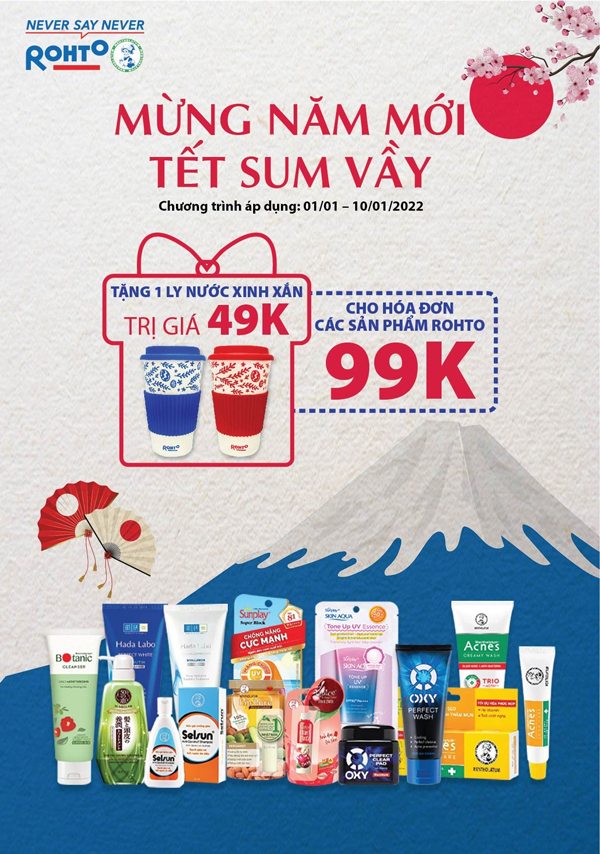 - Hóa đơn 99.000đ cho bất kỳ sản phẩm Rohto: tặng 01 ly uống nước xinh xắn