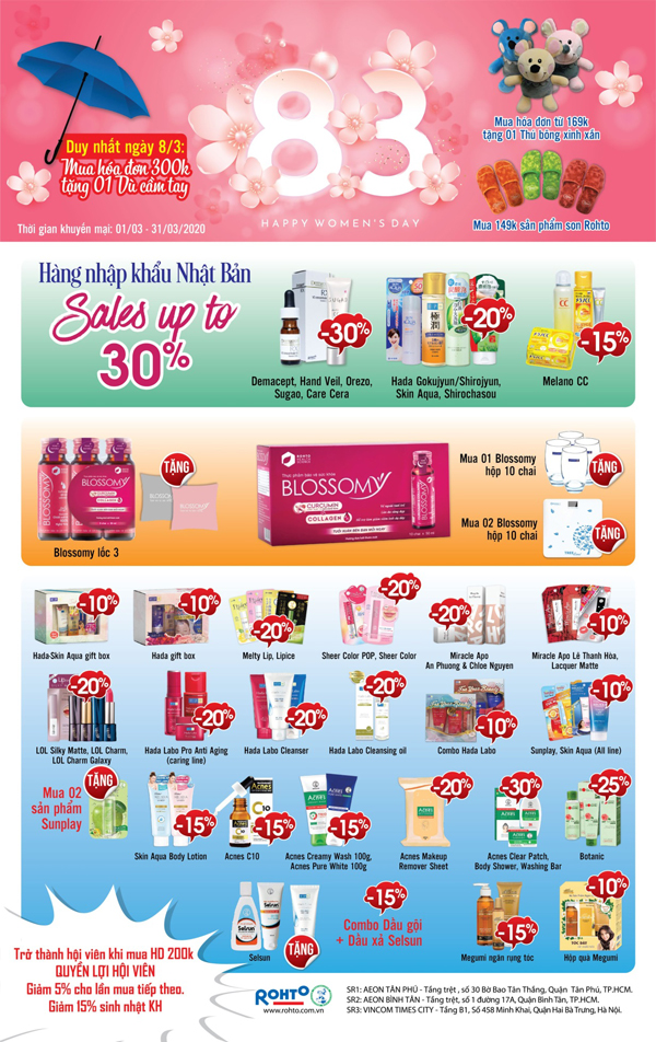 Chương trình khuyến mãi tại hệ thống showroom Rohto tháng 3/2020