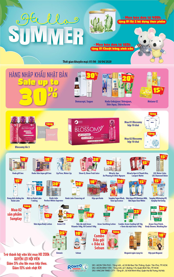 Chương trình khuyến mãi tại hệ thống showroom Rohto tháng 4/2020