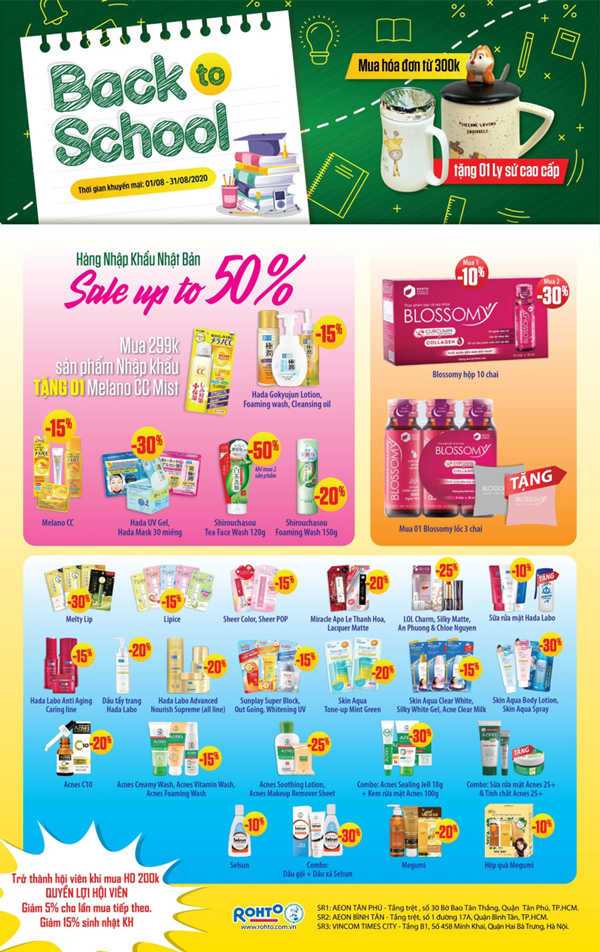 Chương trình khuyến mãi tại hệ thống showroom Rohto tháng 8/2020