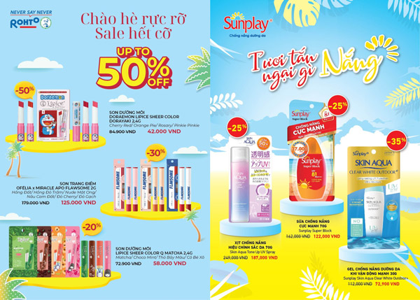 - Giảm giá 25%: Sữa chống nắng giải nhiệt da Sunplay Super Cool 30g, Sữa chống nắng cực mạnh Sunplay Super Block 70g, Kem chống nắng dưỡng ẩm Sunplay Out Going 30g,