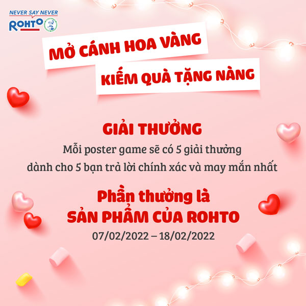 Tham gia ngay minigame hấp dẫn tháng 02 “Mở Cánh Hoa Vàng – Kiếm Quà Tặng Nàng” để nhận thật nhiều quà tặng dễ thương từ Rohto nhé!