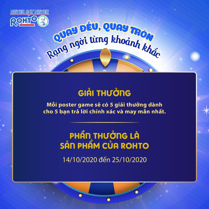 - Poster game là vòng quay có chứa các sản phẩm Rohto. Bên dưới là các ô chữ trống ứng với sản phẩm được chọn trong vòng quay. Fans có nhiệm vụ đoán đúng tên sản phẩm trong các ô chữ.