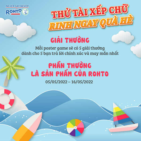 Tham gia ngay minigame hấp dẫn tháng 05 “Thử tài xếp chữ, rinh ngay quà hè” để nhận thật nhiều quà tặng dễ thương từ Rohto nhé!