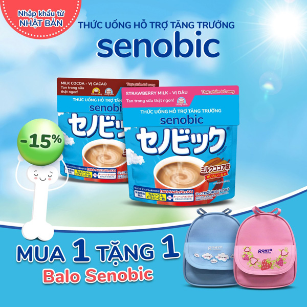 [Mua 1 tặng 1] Thức uống hỗ trợ tăng trưởng Senobic vị dâu hoặc cacao nhận ngay balo dễ thương cho bé