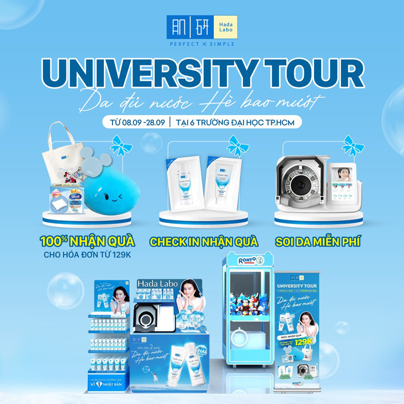 Hada Labo hẹn gặp các bạn sinh viên tại 06 trường Đại Học ở Sài Gòn hứa hẹn mang đến những hoạt động cực kỳ hấp dẫn, 100% có quà: