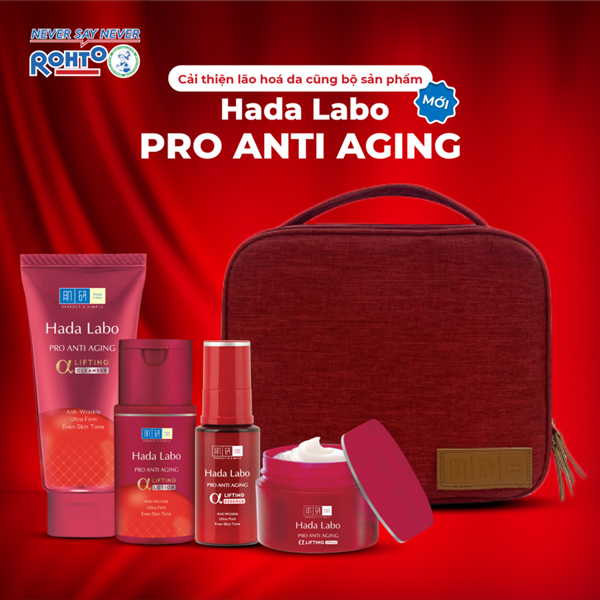 Hada Labo hiểu và yêu thương làn da bạn với bộ sản phẩm cải thiện lão hóa chuyên biệt mới – Hada Labo Pro Anti Aging. Bộ sản phẩm với công nghệ dưỡng chuyên biệt Elastin Lift từ Nhật Bản giúp MỜ NẾP NHĂN - DA SĂN CHẮC - DƯỠNG ẨM SÂU.