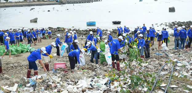 5. Bãi biển Lương Sơn và bãi biển Hòn Đỏ: Nhặt rác, làm sạch môi trường biển.